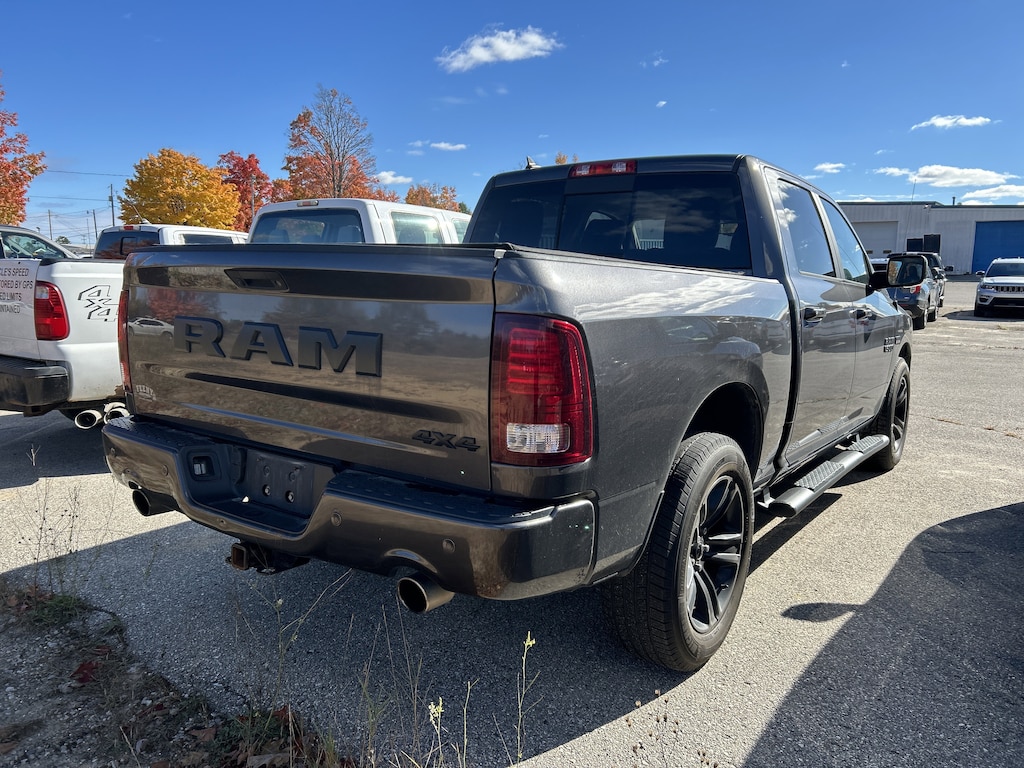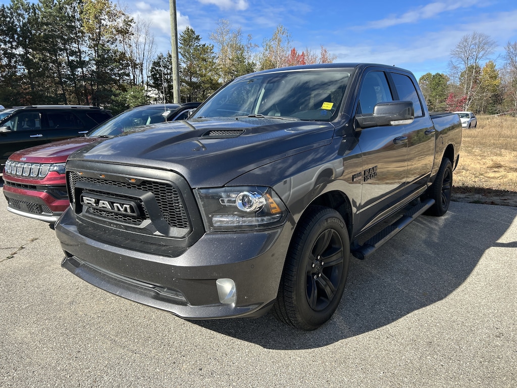 1-Yr SiriusXM Guardian Trial, 115V Auxiliary Power Outlet, 20" x 9" Polished Aluminum Wheels, 32 Gallon Fuel Tank, 5-Year SiriusXM Traffic Service, 5-Year SiriusXM Travel Link Service, 6 Speakers, 8.4" Touchscreen Display, Active Grille Shutters, Adjustable pedals, Alloy wheels, AM/FM radio: SiriusXM, Apple CarPlay, Apple CarPlay/Android Auto, Audio Jack Input for Mobile Devices, Auto-dimming door mirrors, Auto-dimming Rear-View mirror, Automatic temperature control, Center Hub, Class IV Receiver Hitch, Compass, Electronic Stability Control, Emergency communication system: SiriusXM Guardian, Front dual zone A/C, Front fog lights, Front wheel independent suspension, Full Length Upgraded Floor Console, Fully automatic headlights, Garage door transmitter, Google Android Auto, GPS Antenna Input, GPS Navigation, HD Radio, Heated door mirrors, Heated Front Seats, Heated steering wheel, High Back Seats, Illuminated entry, Integrated Voice Command w/Bluetooth, Manufacturer's Statement of Origin, Media Hub (2 USB, AUX), Outside temperature display, ParkSense Front/Rear Park Assist System, ParkView Rear Back-Up Camera, Power door mirrors, Power driver seat, Power Lumbar Adjust, Power Sunroof, Quick Order Package 26Q Night (DISC), Radio: Uconnect 4C Nav w/8.4" Display, Ram 1500 Night Special Edition, Remote keyless entry, Remote USB Port, SiriusXM Traffic Plus, SiriusXM Travel Link, Sport Performance Hood, Steering wheel mounted audio controls, Tilt steering wheel, Tip Start, Turn signal indicator mirrors, USB Host Flip, Wheels: 20" x 9" Semi-Gloss Black Aluminum.